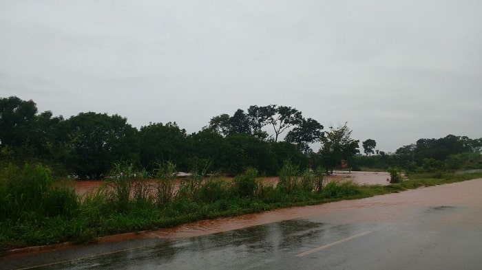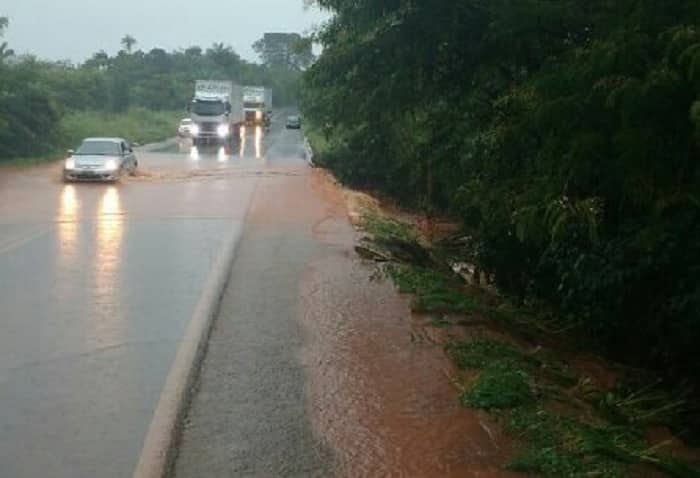 Segundo a PRF, o córrego Grota Seca transbordou e danificou parte do aterro do acostamento da rodovia. Se a chuva continuar o trânsito pode ser interrompido novamente e há o risco de desmoronamento porque a galeria de água não está comportando o volume de água.