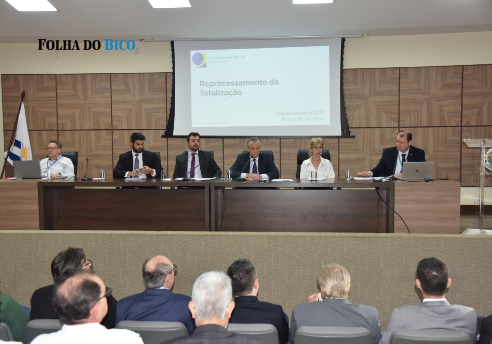 O Tribunal Regional Eleitoral do Tocantins (TRE-TO) realizou, nesta segunda-feira (9), uma cerimônia pública de reprocessamento da totalização dos votos das Eleições Gerais de 2022 para o cargo de deputado federal. A medida atende à decisão do Tribunal Superior Eleitoral (TSE), que passou a aplicar entendimento do Supremo Tribunal Federal (STF) sobre a distribuição de sobras eleitorais. A sessão foi conduzida pela Comissão Apuradora do TRE-TO, presidida pelo juiz Marcelo Augusto Ferrari Faccioni, com participação da juíza Silvana Maria Parfieniuk e do juiz Rodrigo de Meneses dos Santos.
