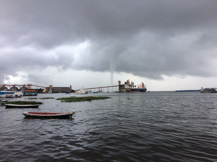 Uma tromba d’água foi registrada na manhã desta segunda-feira (22) em Santarém, oeste do Pará. O fenômeno que é um tornado que acontece sobre a água, ocorreu no rio Tapajós e pôde ser visto e admirado por muitas pessoas da Orla e por quem passava pela avenida Tapajós. Também foi possível ver de outros pontos da cidade, inclusive do alto de prédios.