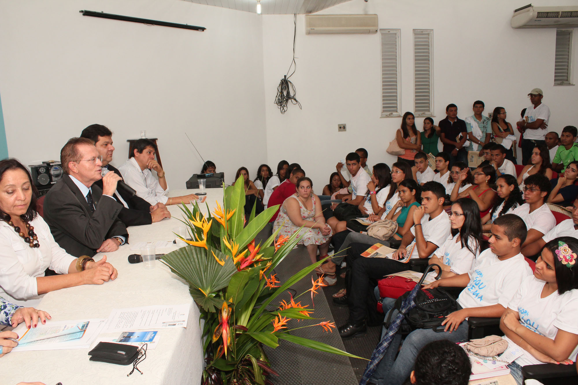 Vários esclarecimentos foram dados quanto ao restaurante universitário, centros e funções de cada setor, além de um caloroso acolhimento aos alunos. Foram apresentados, ainda, os diretores de Centro.