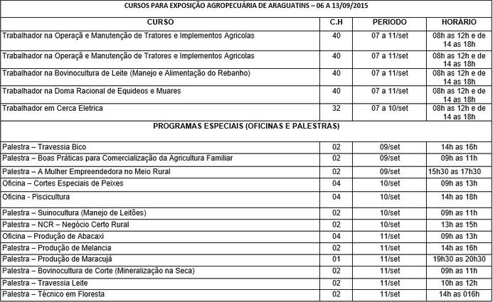 Publicidade Publicidade Bico do Papagaio Veja programação de cursos para as Exposições Agropecuárias de Araguatins e Xambioá OPORTUNIDADE By Folha do Bico 4 de setembro de 2015 0 594 Share WhatsAppPrintTelegramFacebookTwitterCopy URL Folha do Bico Noticias Relacionadas AUGUSTINÓPOLIS: Torneio municipal movimenta o handebol e mira revelar talentos 14 de março de 2026 ARAGUATINS: Educação discute PCCR e levará tabelas salariais para votação da categoria 13 de março de 2026 ARAGUATINS: Sindicato protocola pedido para pagamento de datas-bases atrasadas 13 de março de 2026 Share WhatsAppPrintTelegramFacebookTwitterCopy URL Previous articleCACHOEIRINHA: Gilberto Macena retorna para Tailândia e já participa de amistoso pelo Buriram UnitedNext articlePara repor greve, aulas da rede estadual seguem até janeiro - Advertisement - - Advertisement - - Advertisement - Ultimas noticias Tocantinópolis EC vence Capital FC fora de casa e abre vantagem na semifinal do Tocantinense 14 de março de 2026 Com gols de Jean Bala e Pedrão, União AC supera Gurupi FC na ida da semifinal 14 de março de 2026 OPERAÇÃO 2º TEMPO: Defesa do Tocantinópolis EC afirma que recursos recebidos tiveram finalidade esportiva 14 de março de 2026 PARAUAPEBAS: Prefeitura nega que município enfrente surto de meningite 13 de março de 2026