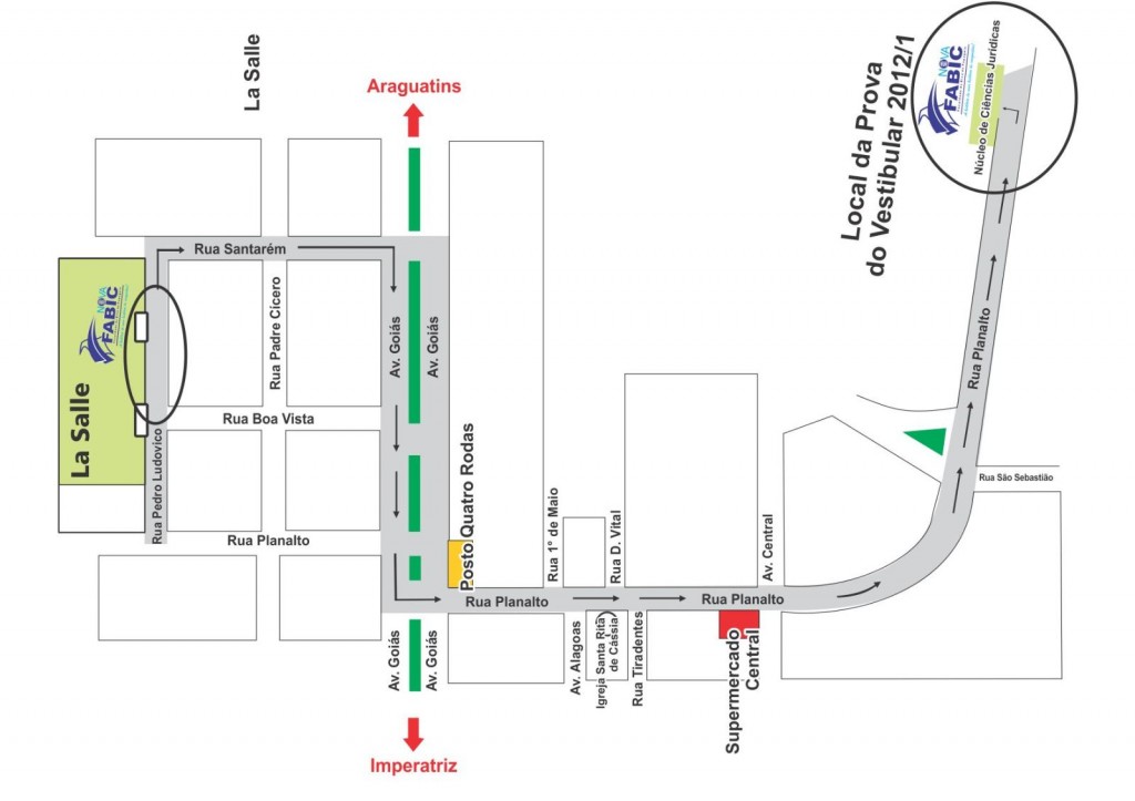 Abaixo, mapa de localização do Núcleo de Ciências Juridicas, partindo do Prédio do Centro Estadual de Educação La Salle, onde também funciona a Fabic.