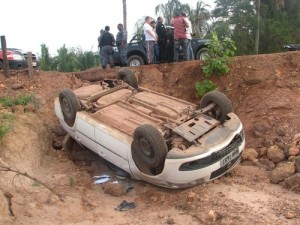 O veículo ficou com as rodas para cima e, em função do local, o saldo do acidente poderia ter sido outro. Os policiais, na verdade, devido às condições que o veículo Siena ficou, tiveram muita sorte em não terem morrido.