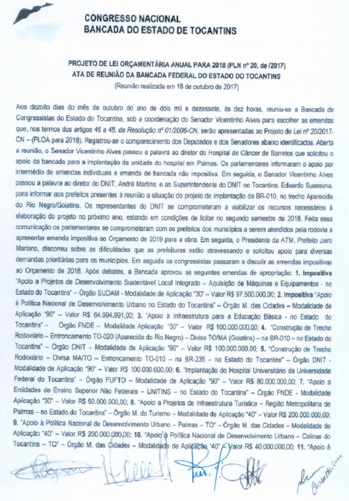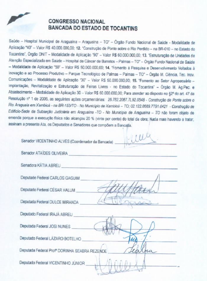 Publicidade Publicidade Bastidores Vicentinho mostra Ata da Emenda de Bancada By Folha do Bico 20 de outubro de 2017 0 624 Share WhatsAppPrintTelegramFacebookTwitterCopy URL Folha do Bico Noticias Relacionadas ATM lamenta morte de José Bonifácio e destaca legado municipalista 1 de dezembro de 2025 Dr. Castro surge como novo nome e anuncia pré-candidatura a deputado federal no Tocantins 1 de dezembro de 2025 Vicentinho Júnior amplia marca de investimentos e entrega duas creches aguardadas há anos no Tocantins 1 de dezembro de 2025 Alegando definição da maioria e normas regimentais, Vicentinho deu sua versão sobre o caso da emenda de bancada. Por meio de Nota o parlamentar colocou sua versão sobre o caso. Veja Nota e Ata: 1 of 3 Share WhatsAppPrintTelegramFacebookTwitterCopy URL Previous articleARAGUATINS: Ecosol Territorial recebe equipamentosNext articleARAGUATINS: PM leva trio para a cadeia acusados de furto e receptação - Advertisement - - Advertisement - Ultimas noticias AUGUSTINÓPOLIS: Vigilante de abrigo é preso suspeito de abusar duas crianças 4 de dezembro de 2025 SÃO MIGUEL: Lixão é fechado e passa a ter acesso controlado sob novas diretrizes ambientais 4 de dezembro de 2025 ARAGUATINS: Insatisfeitos, Abmael, Chico Moura e Rafael Oliveira passam a votar com a oposição e complicam gestão Aquiles 4 de dezembro de 2025 ARAGUATINS: Com voto decisivo e comando da oposição, Airton se torna principal contraponto à gestão Aquiles 4 de dezembro de 2025