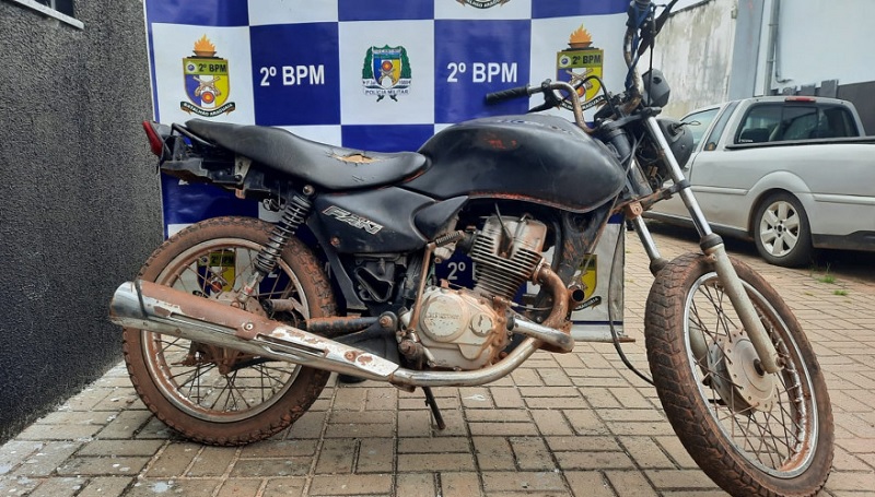 Durante patrulhamento pelo Povoado de Araçulândia, a guarnição da Patrulha Rural da PM se deparou com um homem de 25 anos, conduzindo uma motocicleta Honda CG 125 FAN GM, cor laranja, sem placa e com número do chassi cortado. Pelo número do motor, foi possível pesquisar no sistema e constatar que se tratava de um veículo com registro de furto/roubo, sendo que foi roubada há mais de quatro anos, cuja a cor original estava alterada para preta.