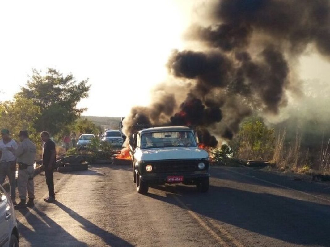 Os manifestantes fecharam a pista com pneus e galhos de árvore. Eles exigem a presença da imprensa. A PM disse que acompanha a situação e vai verificar que medidas serão tomadas.