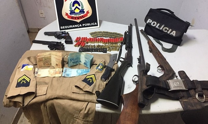Um homem foi preso em flagrante pela Polícia Civil após ser encontrado com uma farda da Polícia Militar, cinco armas de fogo e R$ 15 mil em dinheiro. A prisão foi na manhã desta sexta-feira (27) em Wanderlândia, na região norte do estado. Rosimar Lopes da Silva, de 42 anos, foi preso em flagrante e levado para Araguaína.