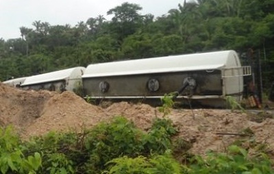 20130112105606_xambioaUm caminhão Scania, placa MXG 8052, carregado com cerca de 40 mil litros de óleo diesel, tombou nesta quinta-feira, 10, por volta das 17 horas no km 10 da BR 153, próximo à cidade de Xambioá. Cerca de 7 mil litros do produto foram derramados e espalhados pela pista, e atingiram um córrego que abastece algumas propriedades rurais da região.