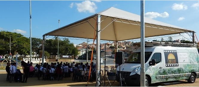 Para que os filmes possam ser apresentados à noite, a energia solar é captada durante todo o dia por um furgão equipado com um sistema capaz de gerar a própria energia para alimentar toda sua estrutura de exibição. O veículo conta com placas solares que possibilitam, por meio de um sistema conversor de energia solar para elétrica, a exibição de filmes e apresentações artísticas. O furgão possui ainda todos os equipamentos necessários para a realização de sessões de cinema e apresentações artísticas: 150 assentos para o público, telão, sistema de projeção e som, além de uma cabine de DJ para acompanhar as atividades.