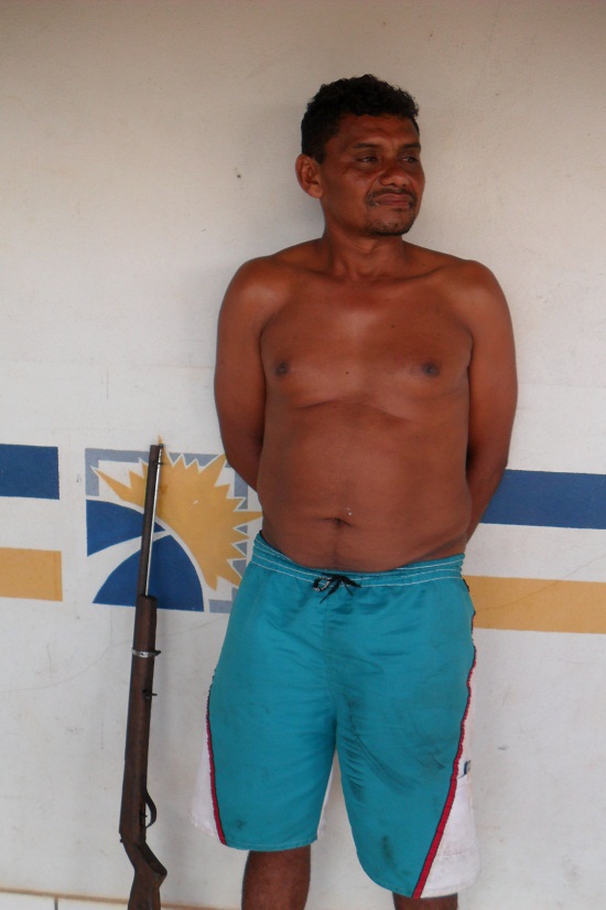 Os militares do Grupamento de Rádio Patrulha deslocaram-se ao local e conseguiram capturar Antônio Vicente já em sua residência. Com ele, os PMs encontraram uma espingarda de fabricação artesanal, tipo “bate-bucha” municiada, dois tubos de pólvoras usados e um recipiente com chumbo.