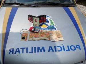 Ao realizar patrulhamento no setor Alto Bonito, a equipe da viatura se deparou com um jovem com as mesmas características, próximo ao local do ocorrido e, ao abordá-lo os militares constataram que se tratava do autor. Ao realizarem uma busca pessoal os militares encontraram com ele uma quantia de R$ 200,00 em dinheiro e um aparelho de celular vermelho, marca mobile. Questionado sobre a procedência do celular, o acusado informou que tinha adquirido com o dinheiro do furto.