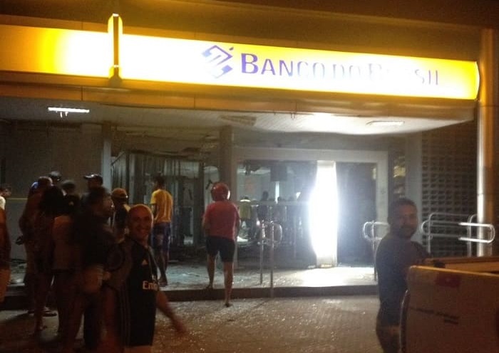A primeira agência a ser atacada foi a do Banco do Brasil. Eles explodiram caixas eletrônicos e levaram todo o dinheiro. Portas e paredes foram quebradas. O local ficou completamente destruído. Durante a ação, os criminosos deixaram para trás um dos carros usados na ação, abandonando o veículo em frente a agência. Eles pegaram o carro de um dos reféns para fugir.